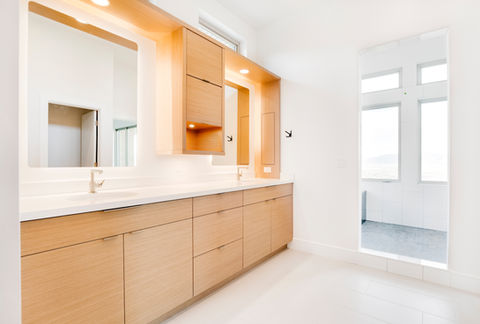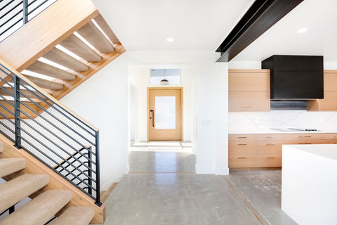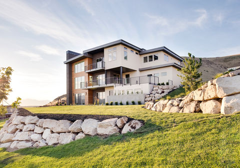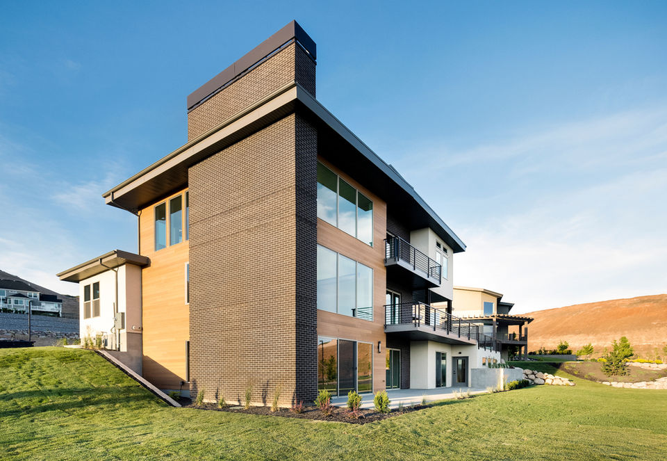 A modern new-age home on the foothills of Traverse Mountain. The exterior expresses diverse materials such as brick, cedar, and stucco. The interior of the home is geared towards European modern with high contrast finishes. This design creates a fusion of timeless textures and modern aesthetics. Architecturally, we focalized the brick of the home on the interior and exterior throughout. The design prioritizes the outdoor spaces/decks off the back of the home. Specific window placements and sizes optimize the views surrounding the property as well as increase the amount of natural light within the home.
