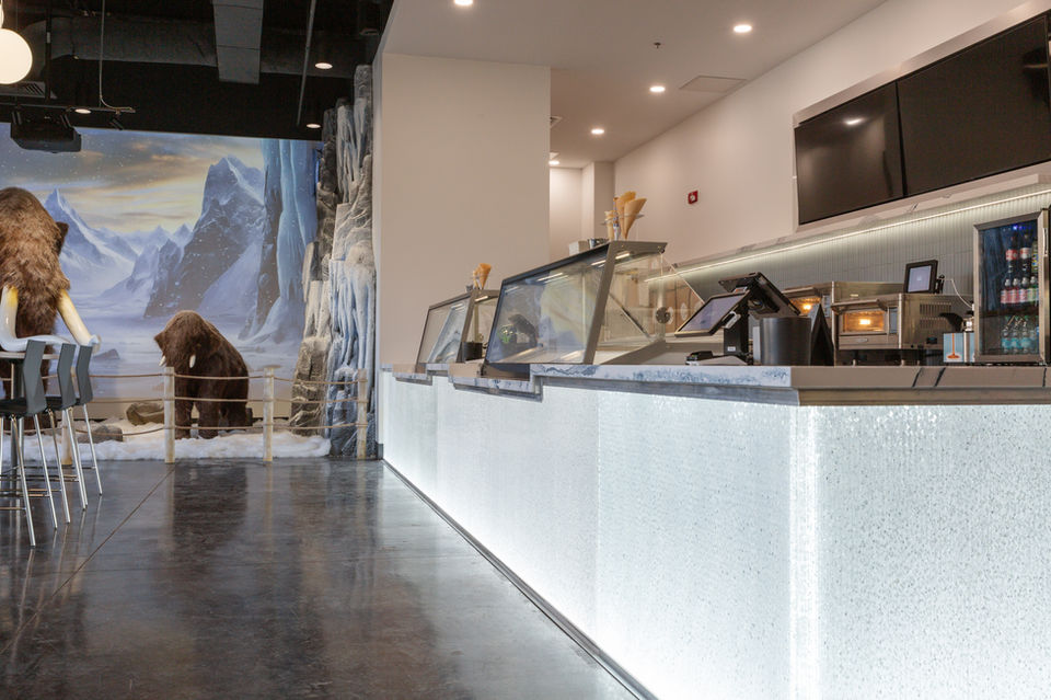 The objective of this project was to transform an existing, underutilized space in the Museum of Ancient Life at Thanksgiving Point into a one-of-a-kind ice cream shop, creating an immersive and fun environment that transports visitors into the Ice Age. The design incorporates creative elements inspired by the prehistoric era while offering a modern, inviting atmosphere for customers of all ages. The completed renovation has transformed the space into a unique destination where history, creativity, and a love for ice cream come together and offers a new, delightful and engaging experience to the museum.